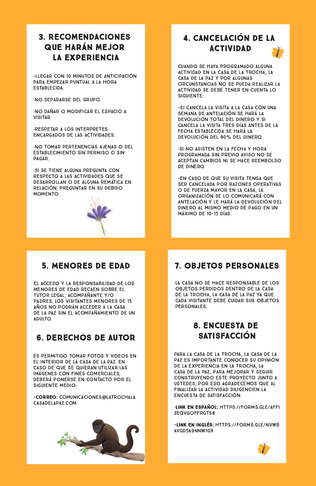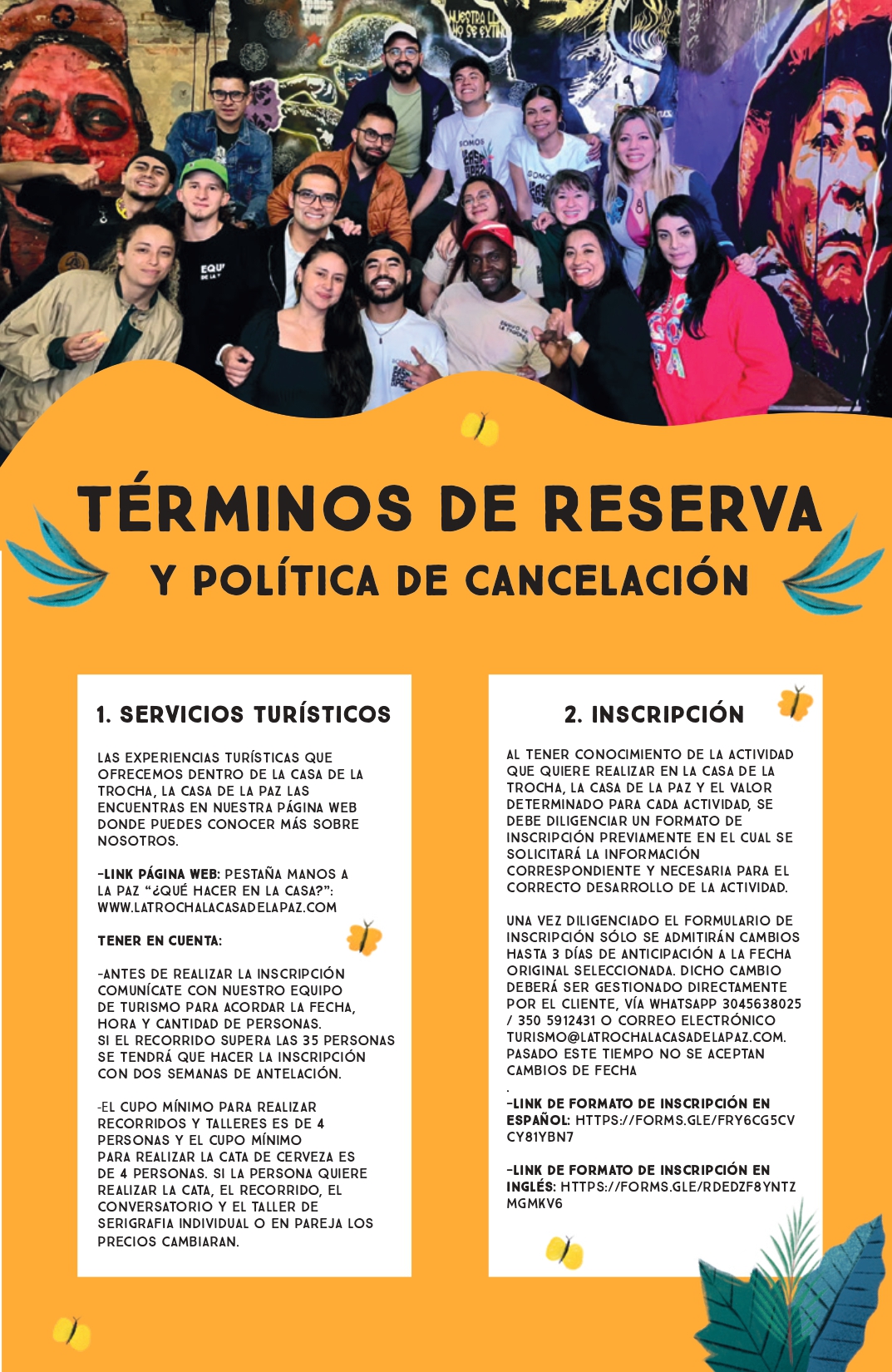 Para mas información escribenos al 3045638025 o al correo turismo@latrochalacasadelapaz.com