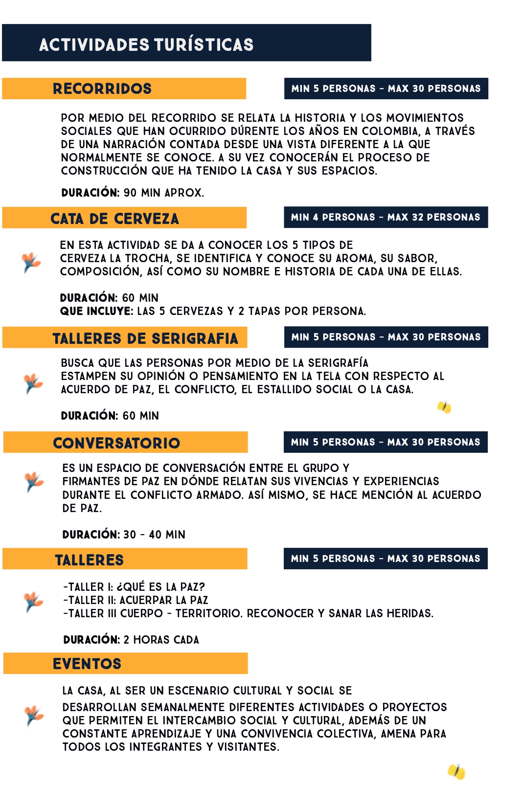 Para mas información escribenos al 3045638025 o al correo turismo@latrochalacasadelapaz.com